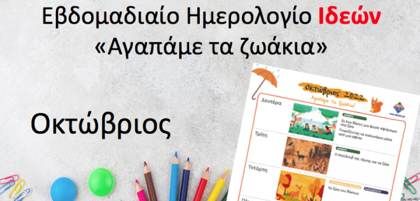 Εβδομαδιαίο Ημερολόγιο Ιδεών - Οκτώβριος - Αγαπάμε τα ζωάκια
