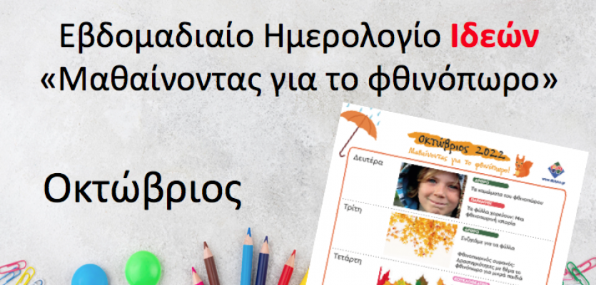 Εβδομαδιαίο Ημερολόγιο Ιδεών - Οκτώβριος - Μαθαίνοντας για το φθινώπορο