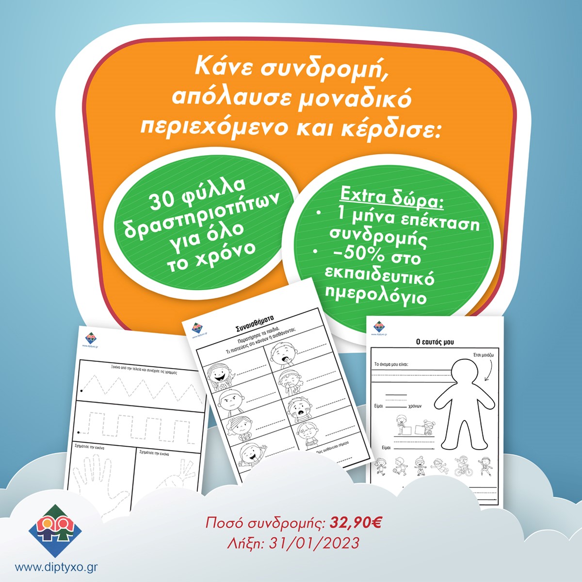 Κάνε ΤΩΡΑ Ετήσια Συνδρομή στην Εκπαιδευτική Βιβλιοθήκη diptyxo.gr για να απολαμβάνεις NEO πρωτότυπο εκπαιδευτικό υλικό κάθε εβδομάδα &